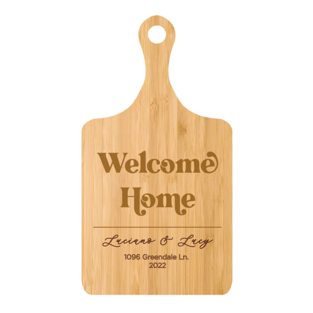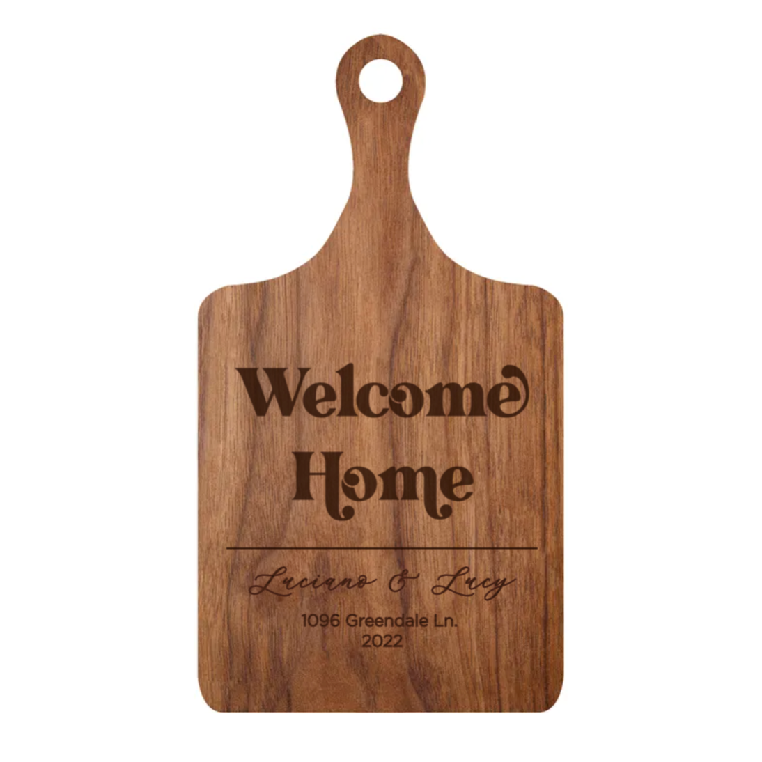 Personalized charcuterie board engraved with your details. Wood types and sizes vary based on your choices, see our size chart for options.