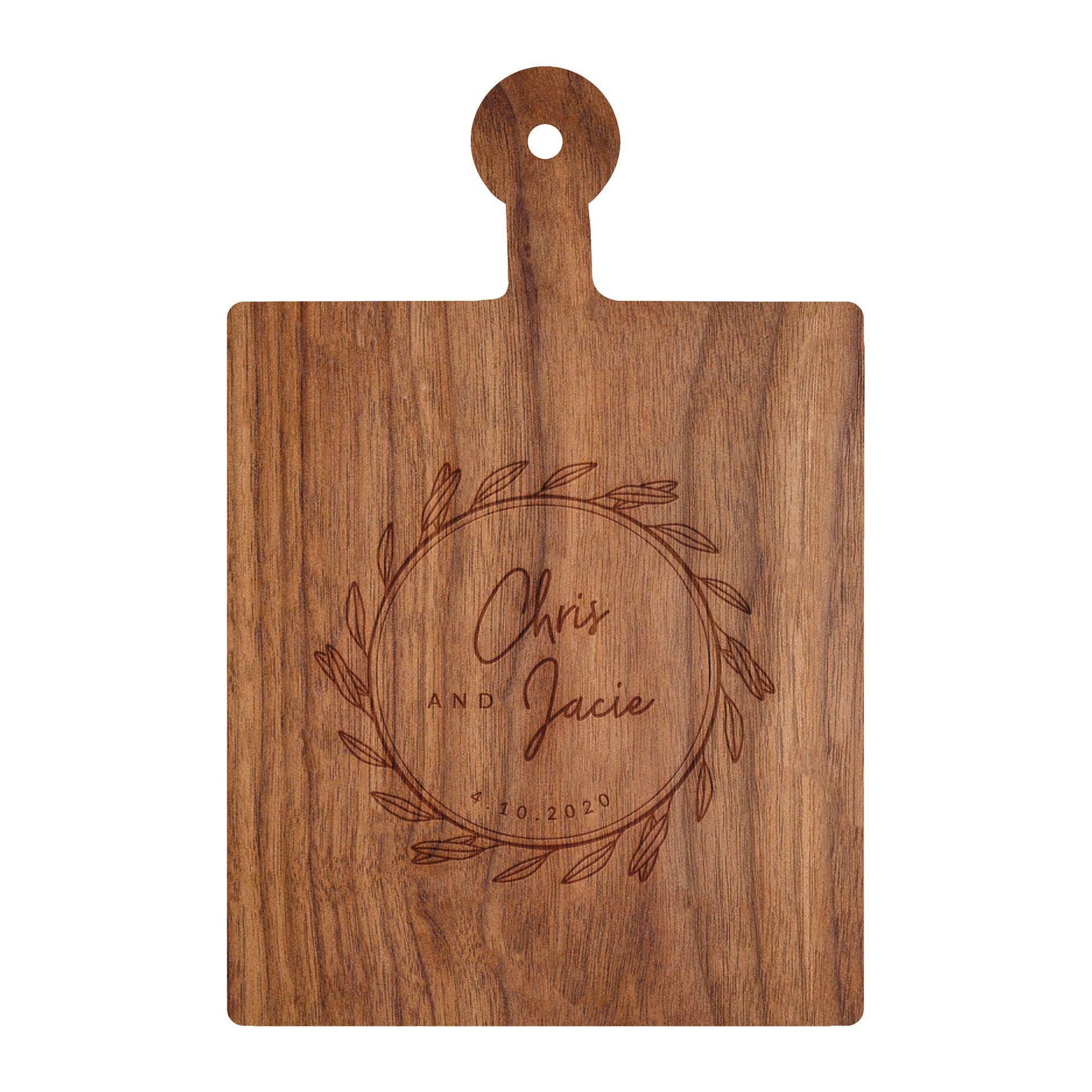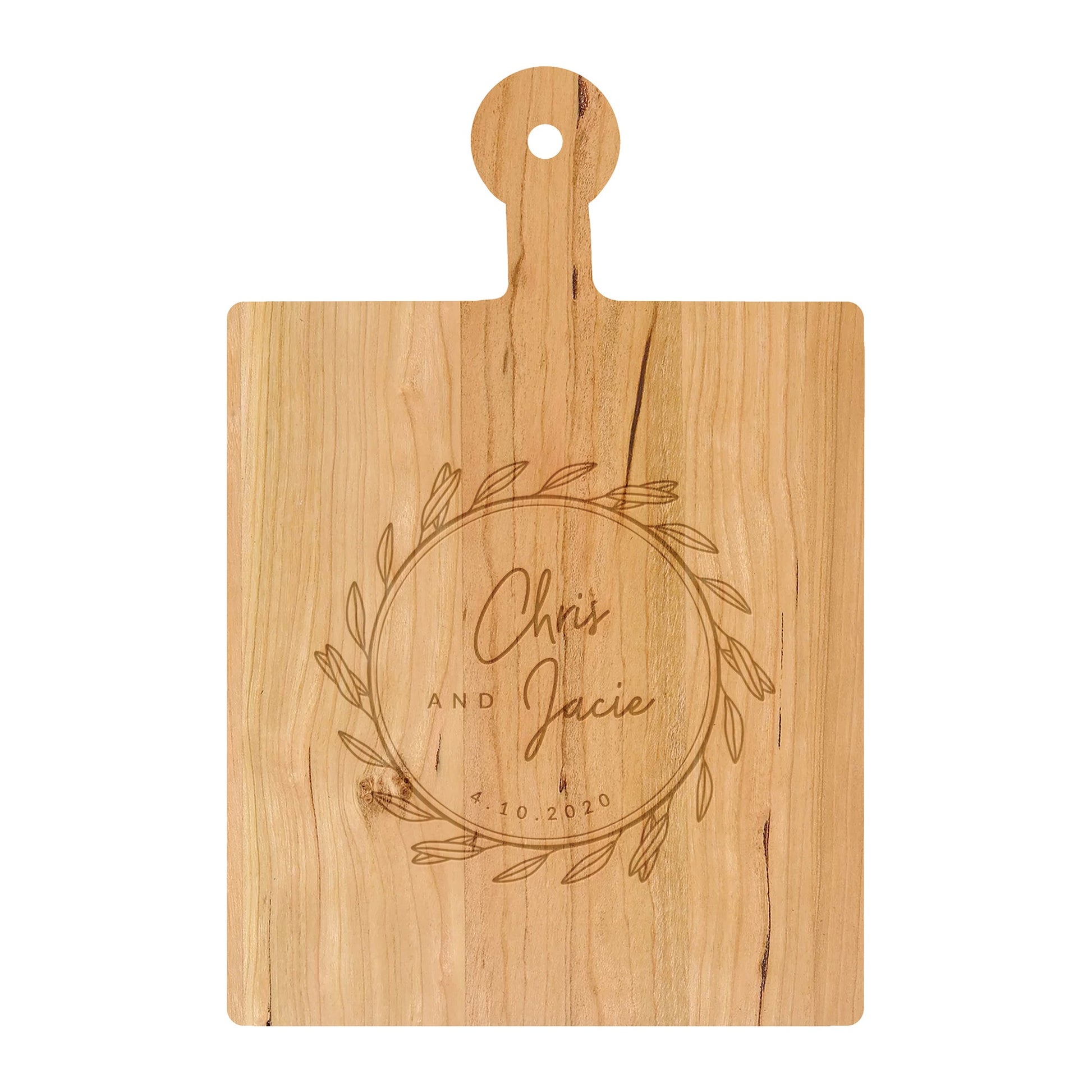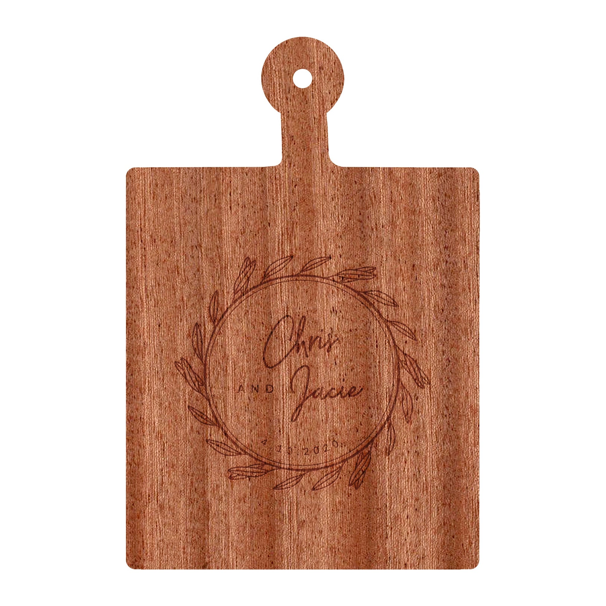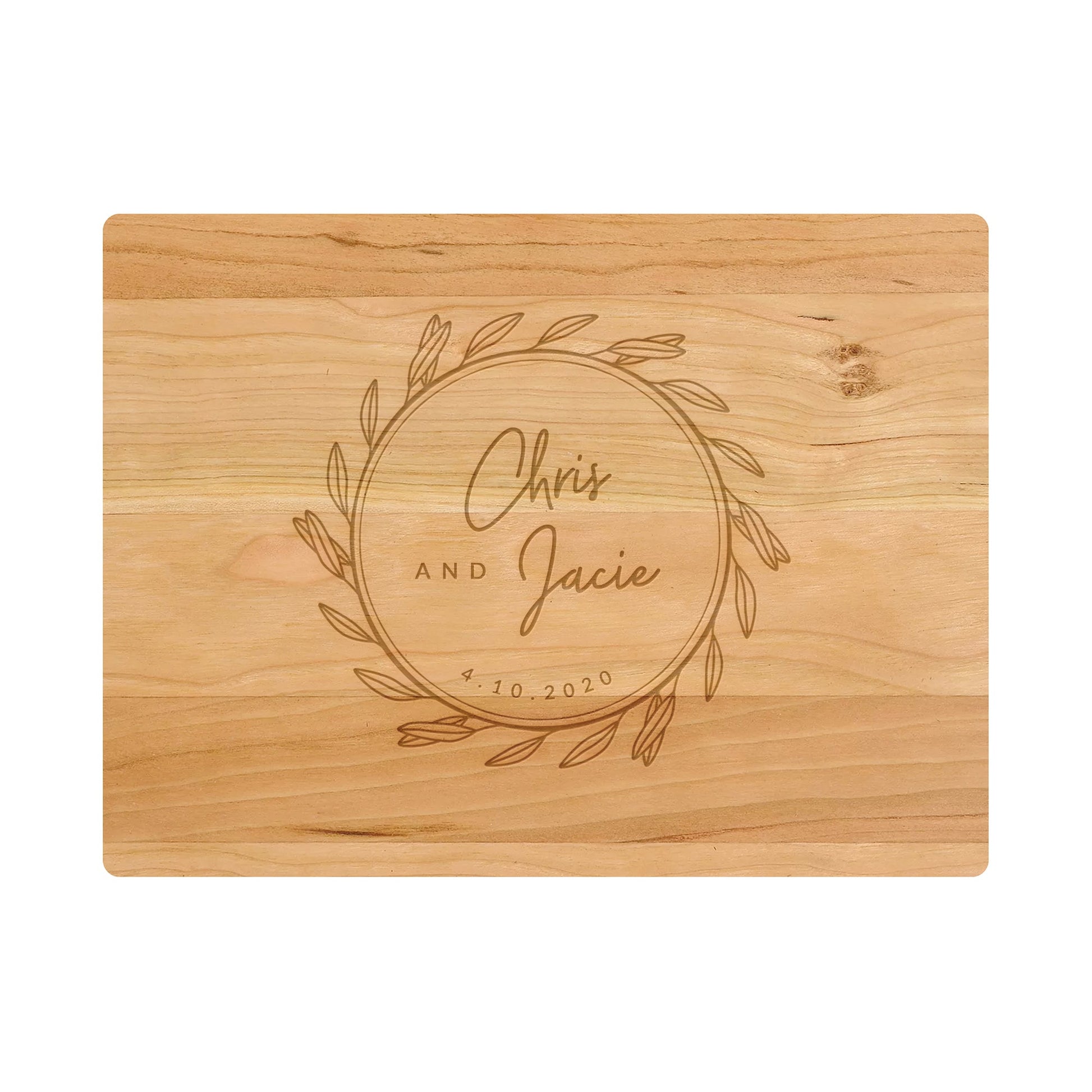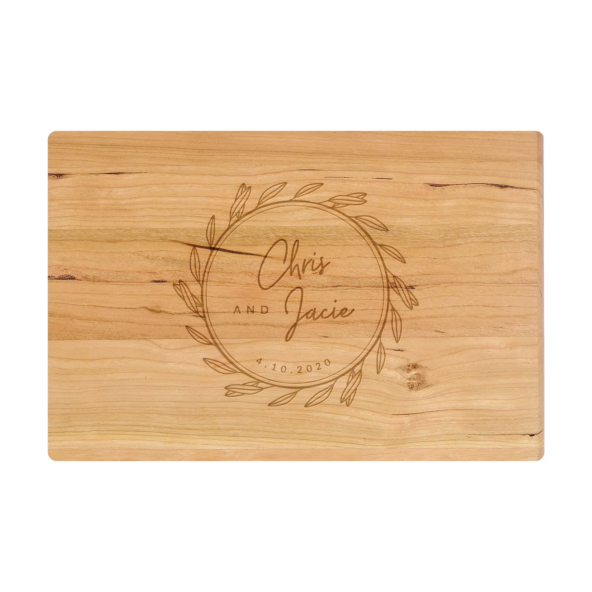 Personalized charcuterie board engraved with your details. Wood types and sizes vary based on your choices, see our size chart for options.