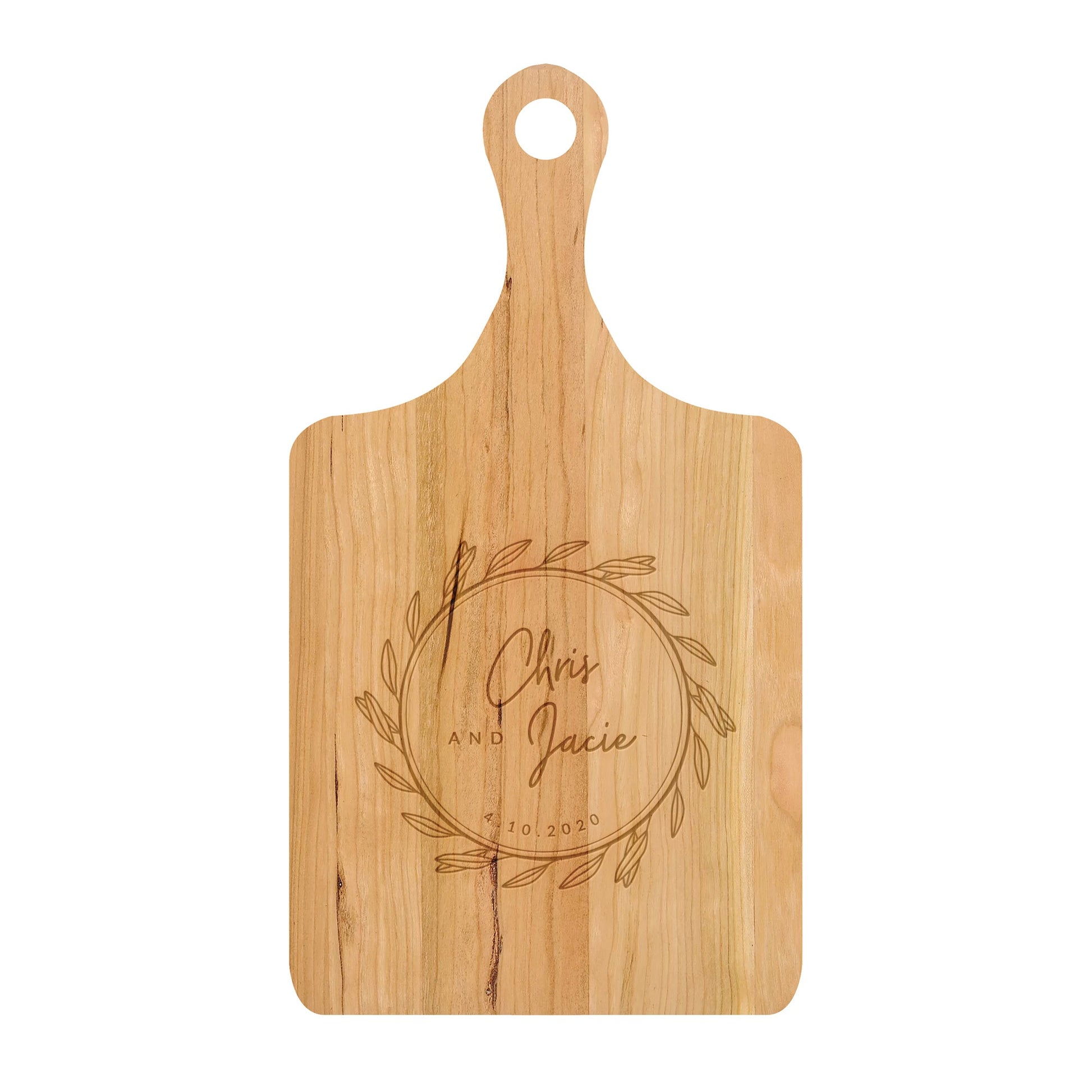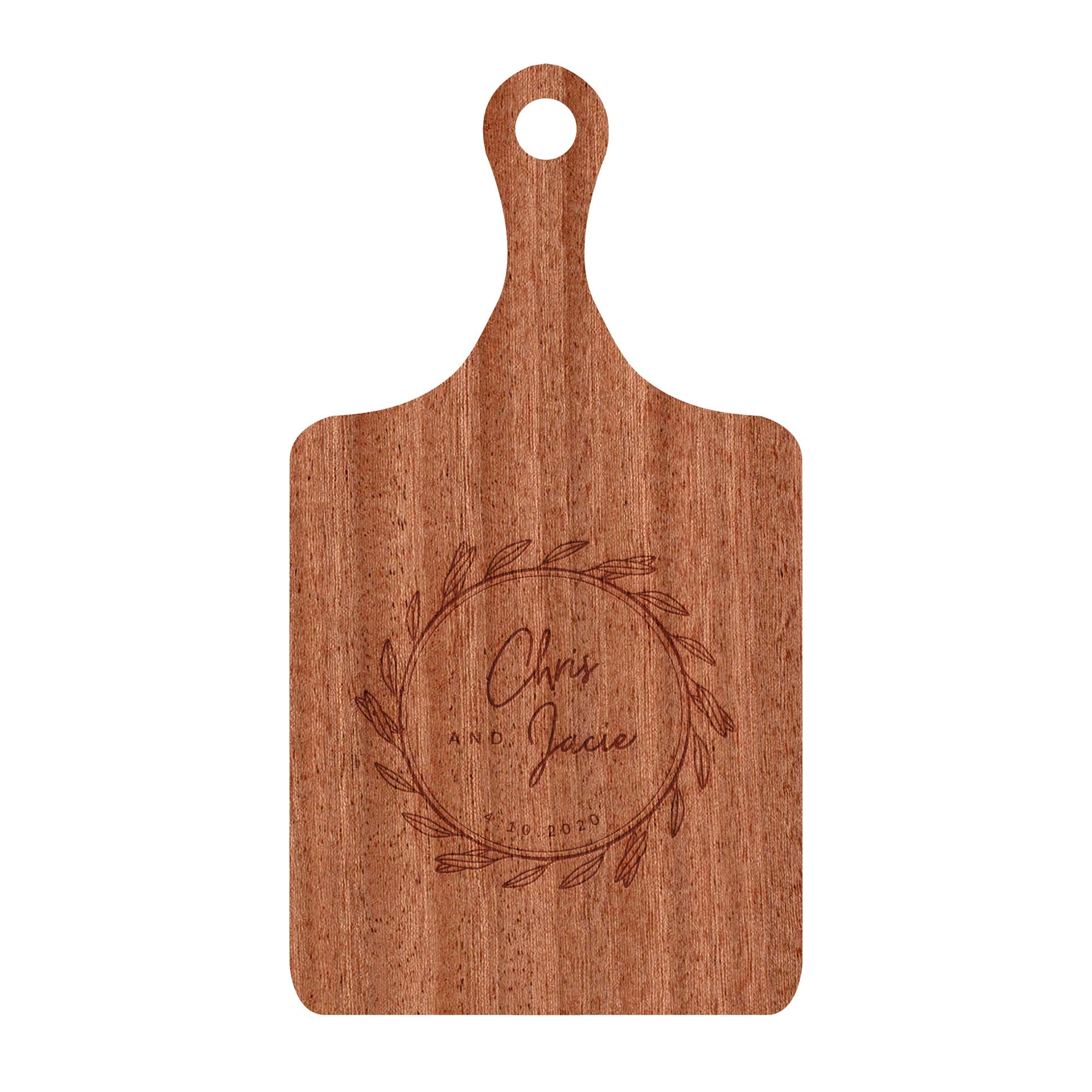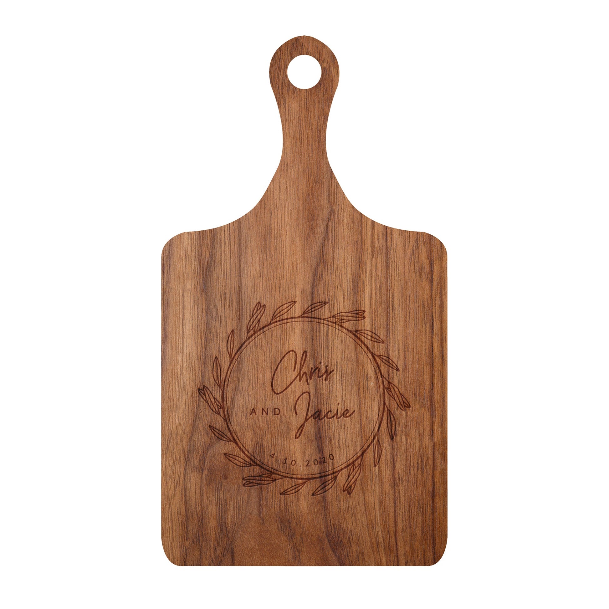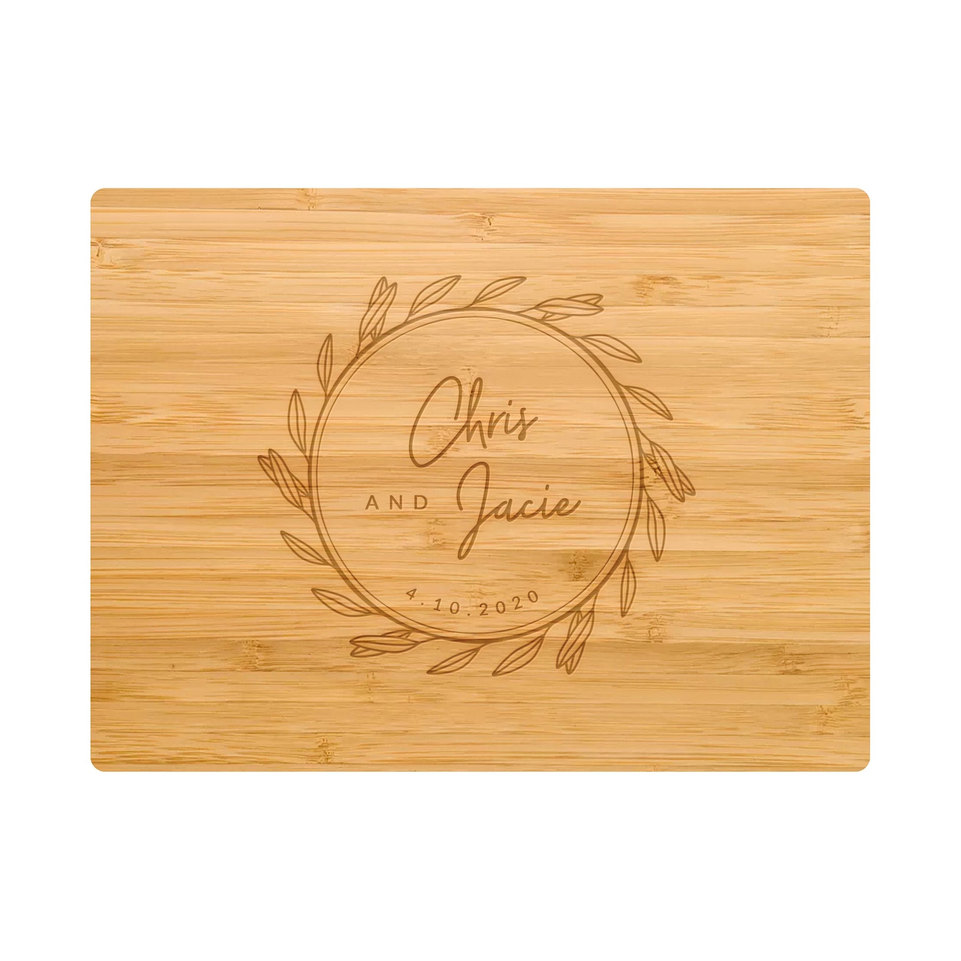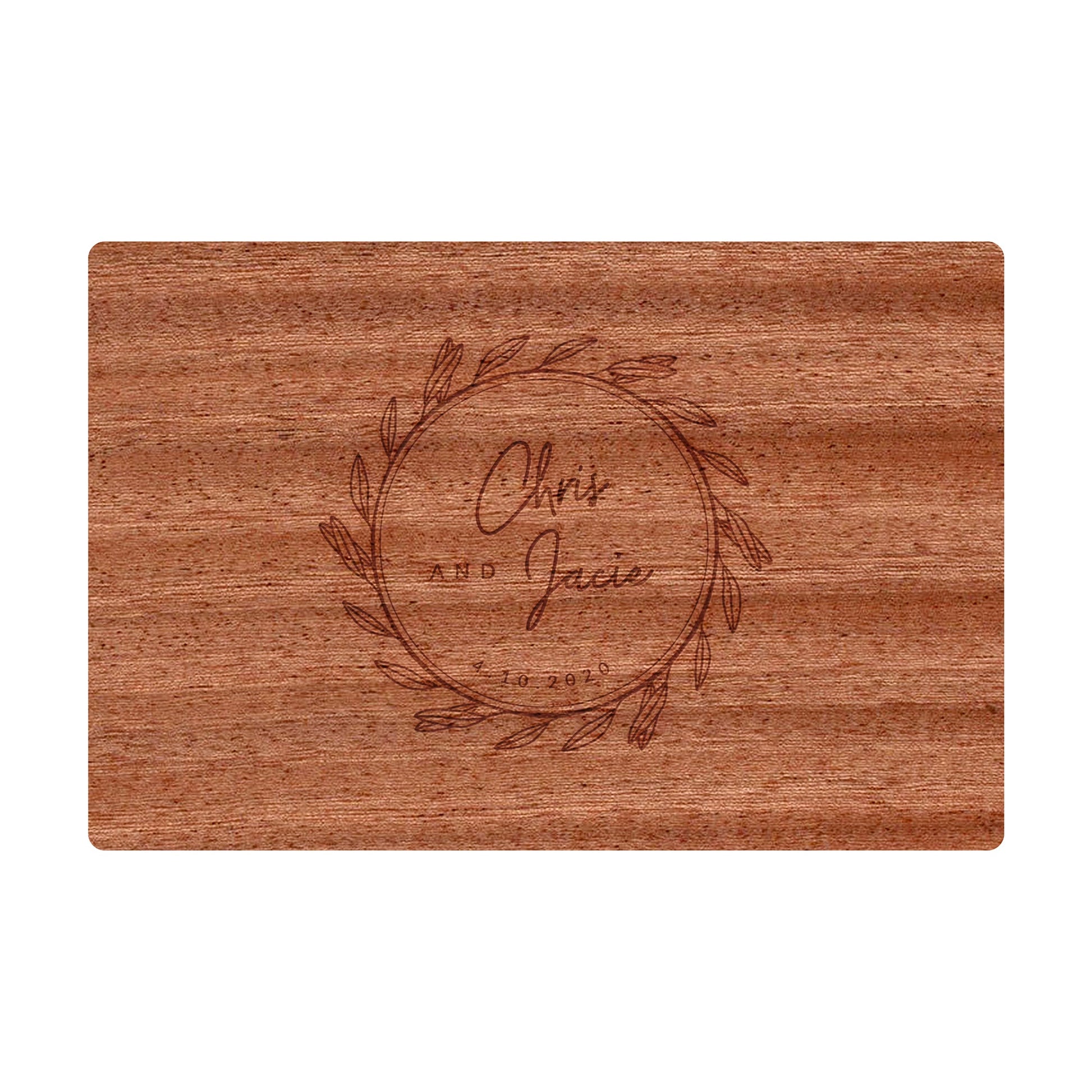 Personalized charcuterie board engraved with your details. Wood types and sizes vary based on your choices, see our size chart for options.