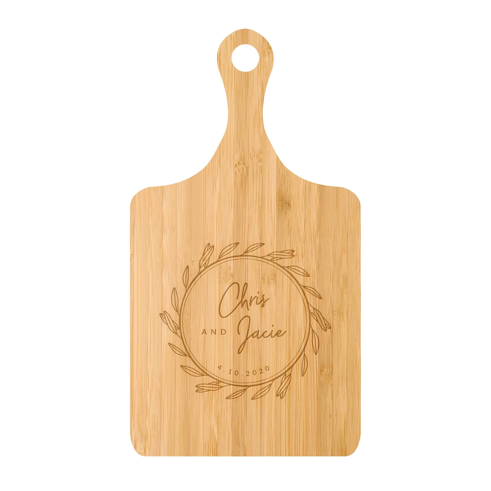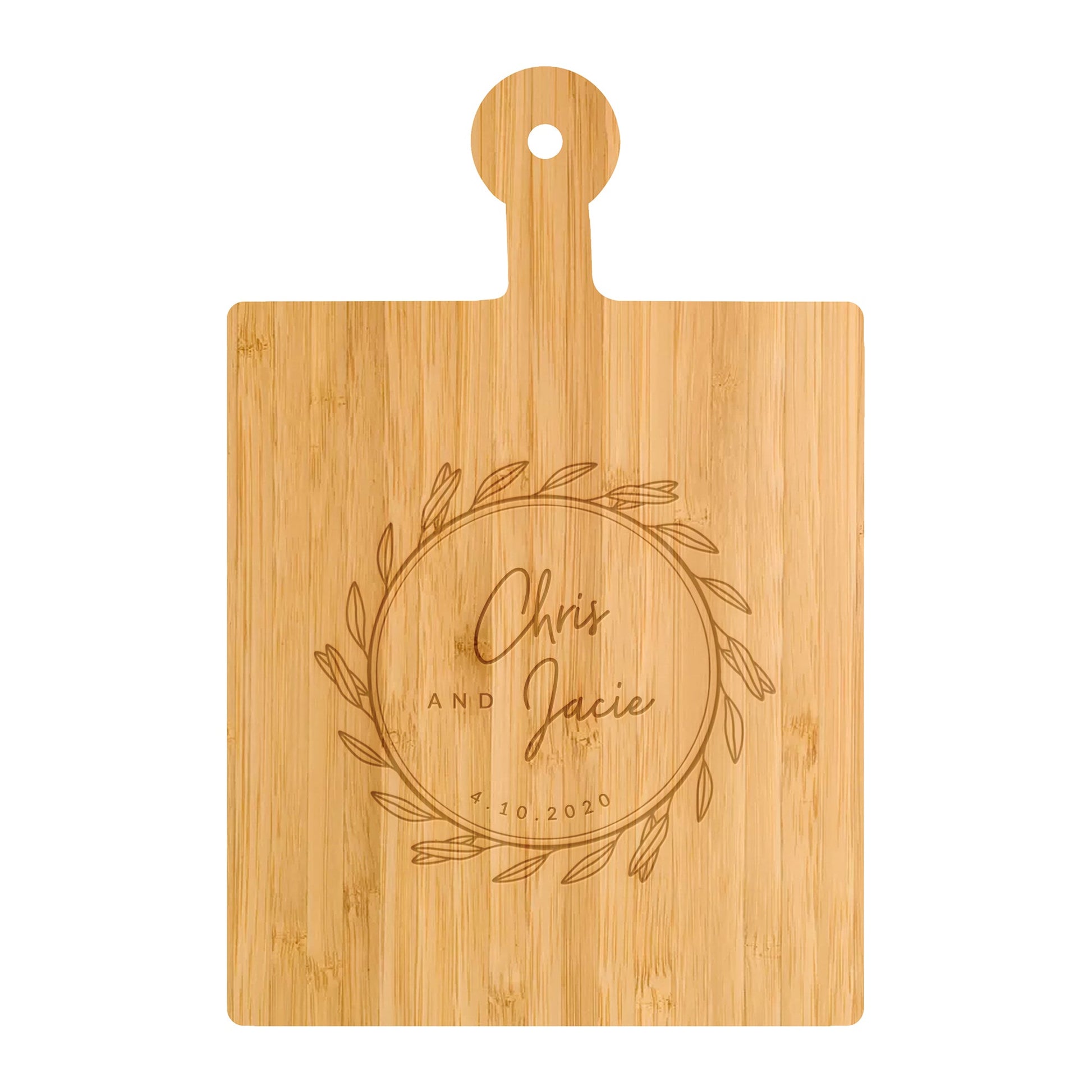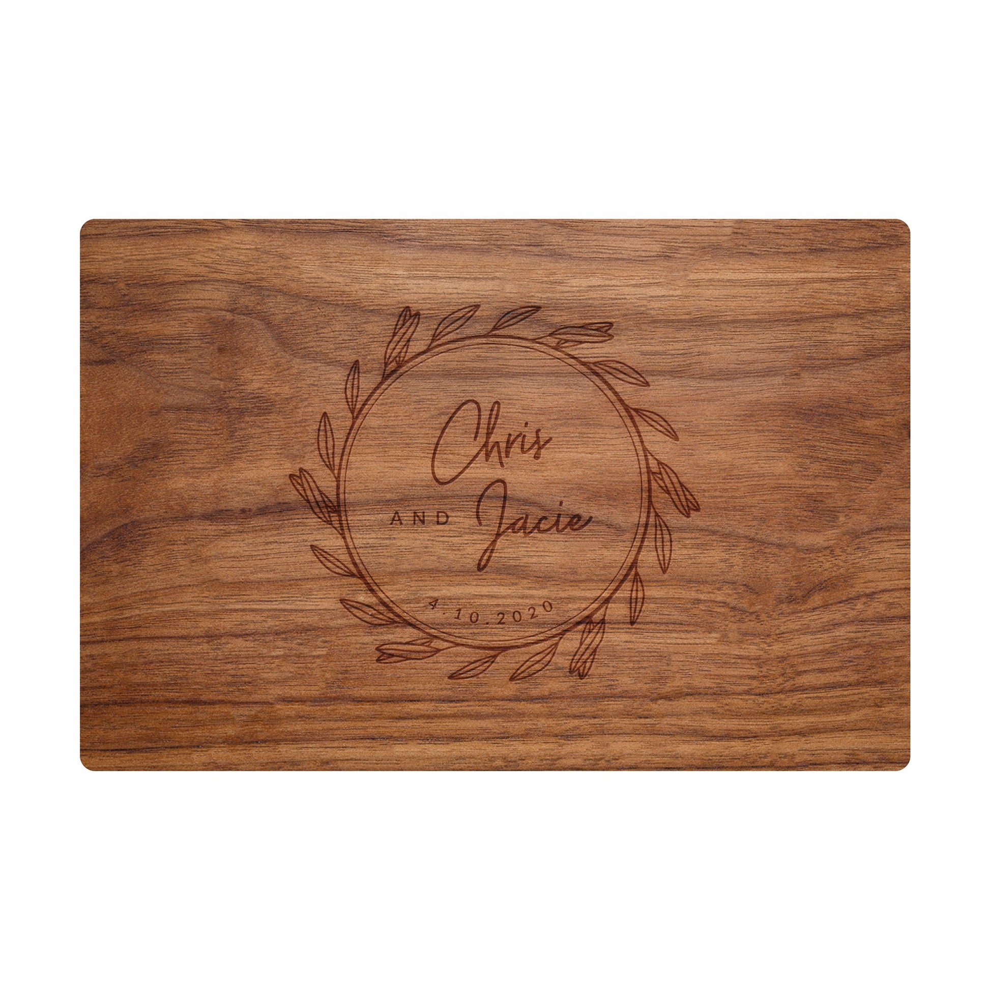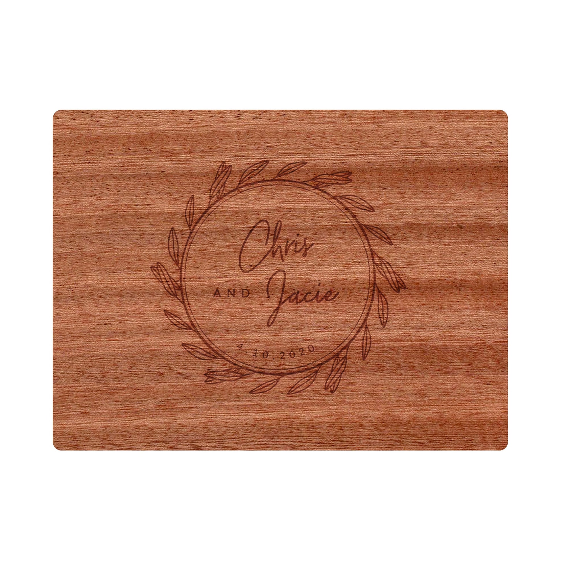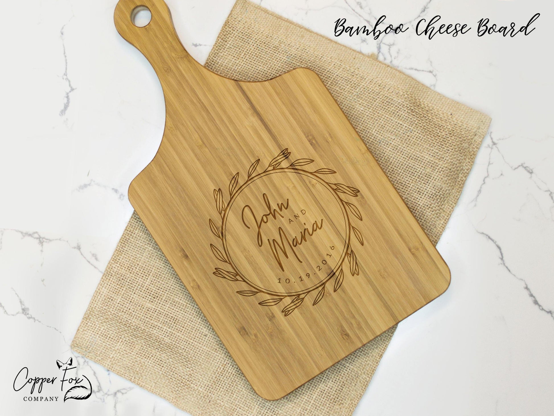 Personalized charcuterie board engraved with your details. Wood types and sizes vary based on your choices, see our size chart for options.