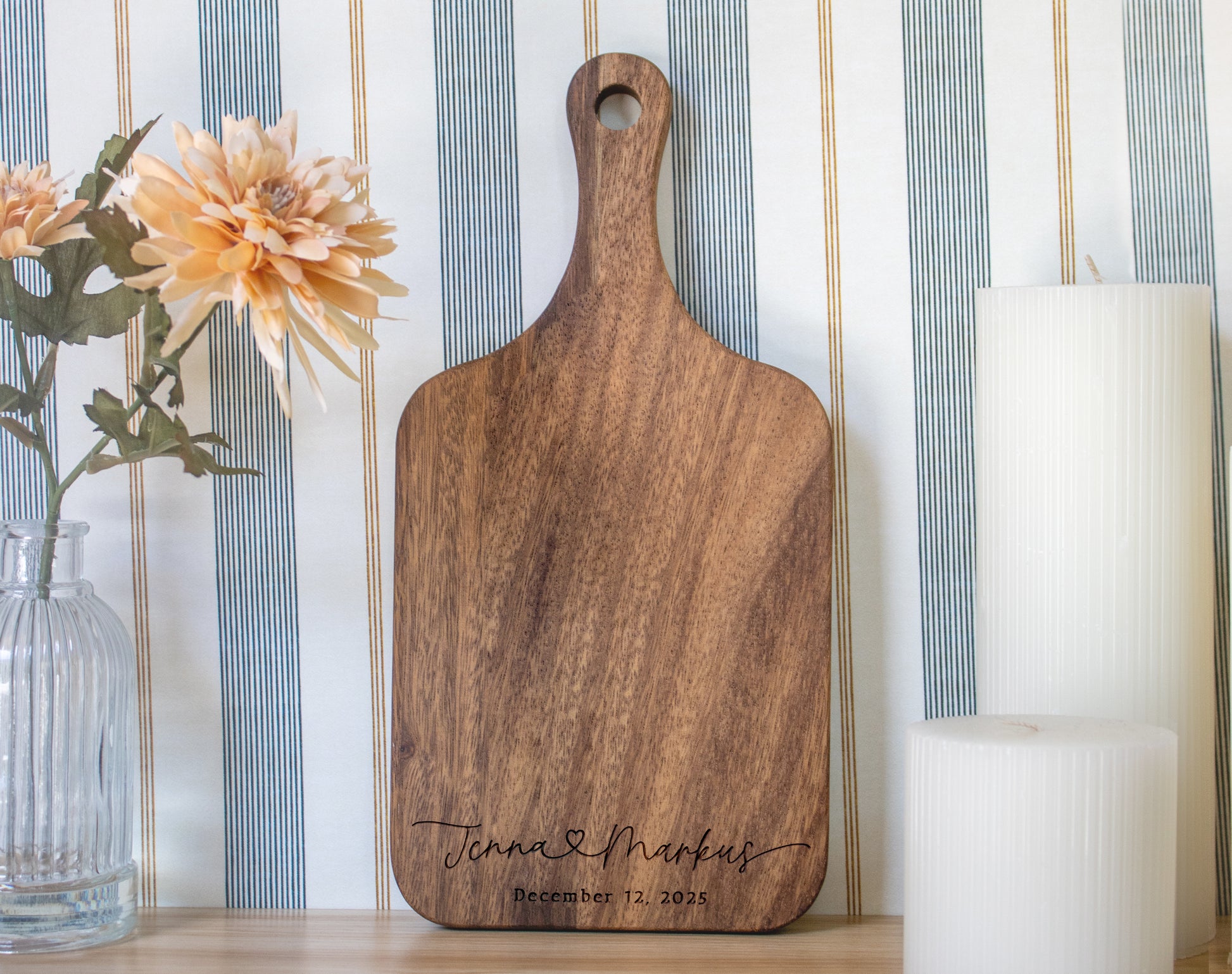 Our personalized charcuterie boards and cutting boards are great for engagement gifts, bridal shower gifts, custom wedding gifts, and anniversary gifts for her!