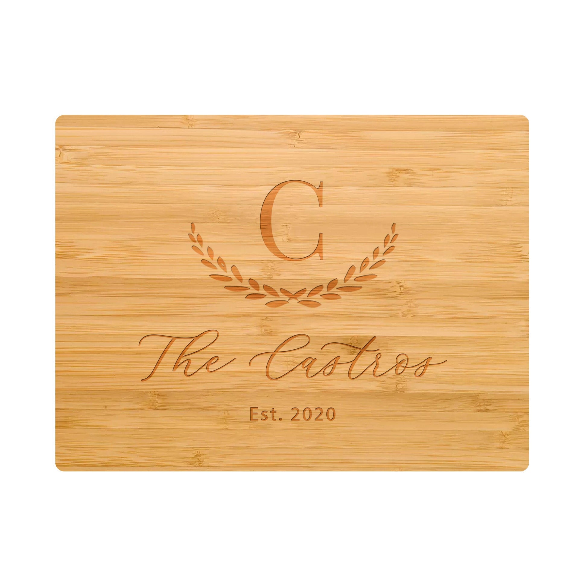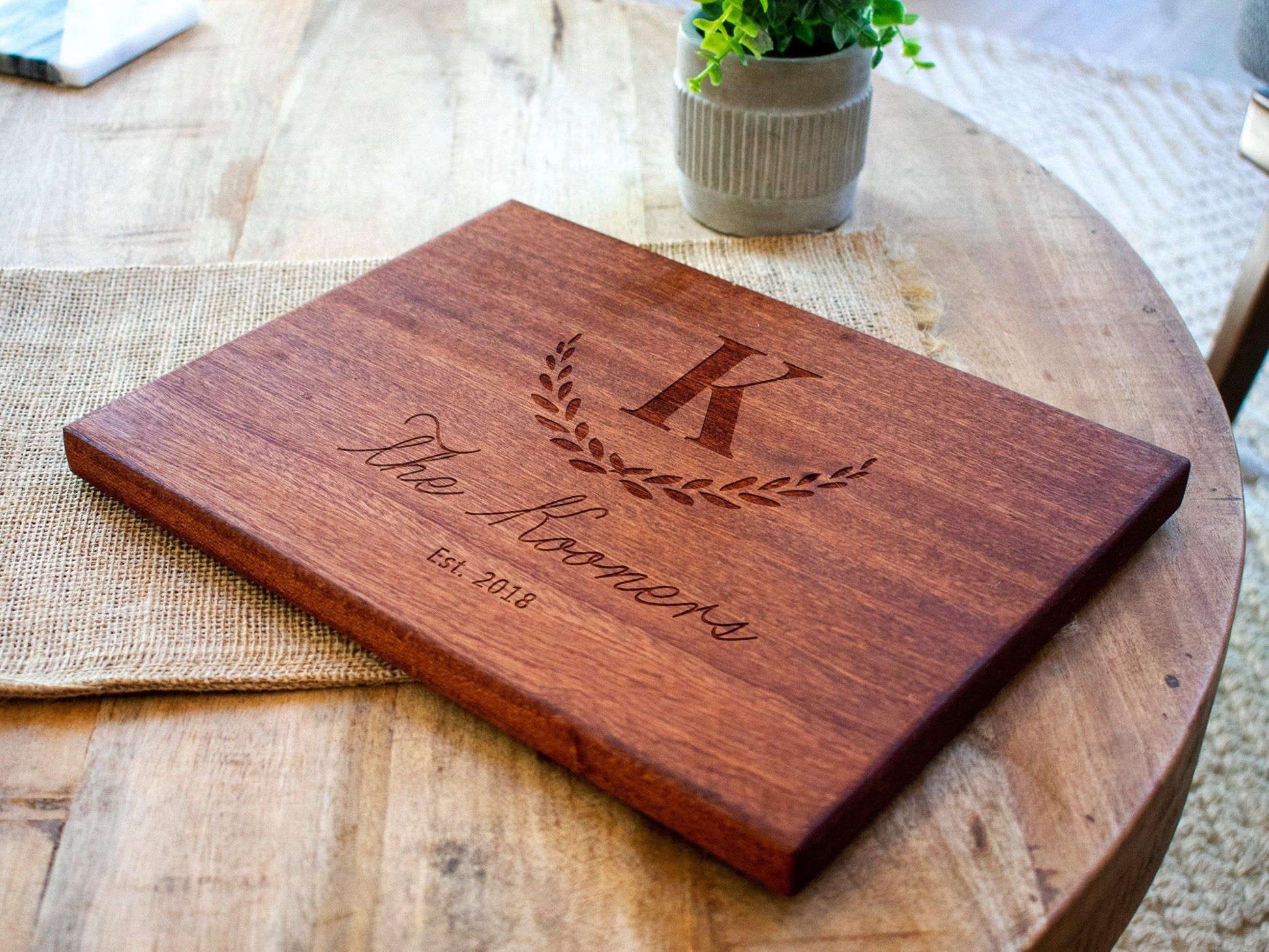 Personalized charcuterie board engraved with your details. Wood types and sizes vary based on your choices, see our size chart for options.